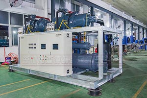 壓縮機 ,是一種將低壓氣體提升為高壓氣體的從動的流體機械,工作原理是:它從吸氣管吸入低溫低壓的制冷劑,通過電機運轉帶動活塞對其進行壓縮后,向排氣管排出高溫高壓的制冷劑,為制冷循環提供動力,是制冷系統的心臟。制冰制冷行業常用壓縮機是:渦旋壓縮機、半封閉活塞壓縮機、螺桿壓縮機。這三種類似壓縮機各有優劣,通常0.3-3噸小型片冰機采用渦旋壓縮機,3噸-10噸中型片冰機采用半封閉