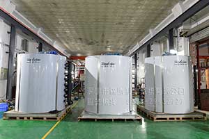 制冰機加一定比例的鹽,1.可以大大改進冰片質量,冰片硬度更高,提高韌性,不容易碎且美觀。2.加鹽使冰不易融化,延長冰片保鮮時間。3.使冰片容易成型,方便冰片切割, 從而刮冰噪音更低, 而且保護制冰設備, 耗費更少的電。 制冰機加鹽比列是多少? 以Sindeice制冰機為例,Sindeice制冰機出廠會配置一個25公斤的鹽水桶。生產1噸冰需要鹽8