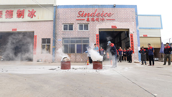 大家別光顧著賺錢,消防安全不可忽視。森德制冰每個員工,都必須要會使用滅火器,懂得自救和逃生。